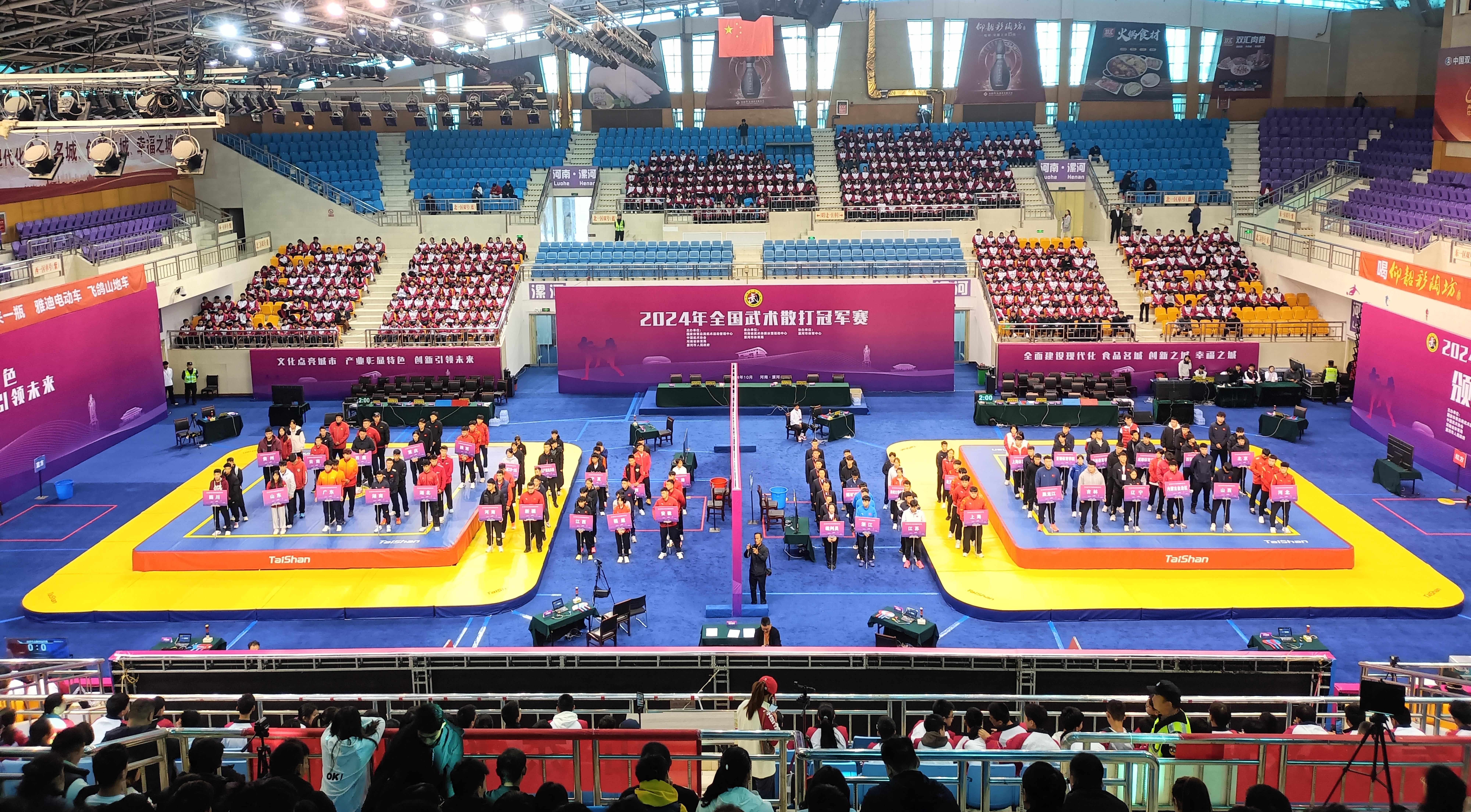 10月24日,全国武术散打冠军赛在河南省漯河体育中心体育馆开打,来自国内顶级40支代表队的近400名武术散打健儿汇聚漯河,给观众带来一场展现武术精髓的盛宴。好博体育体育成为本届赛事场地器材、训练器材供应商与服务商。