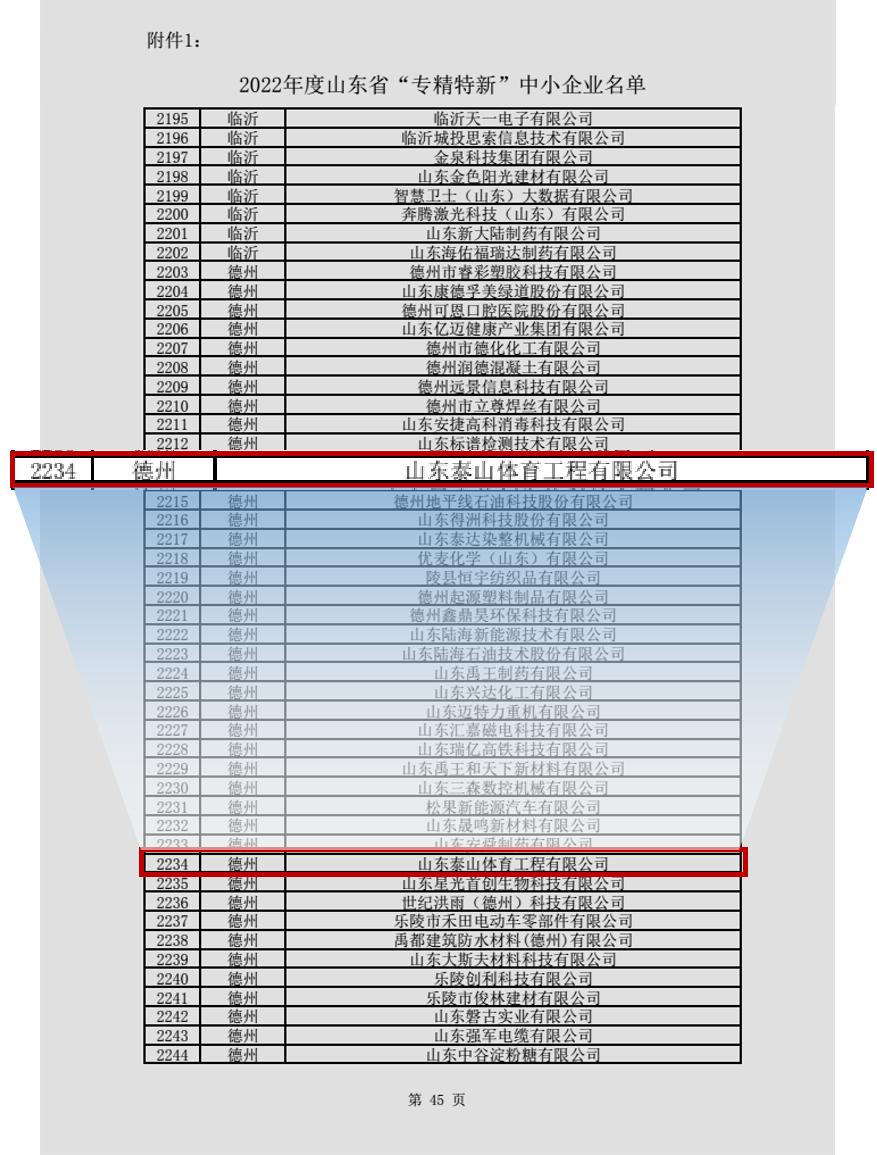 此次上榜2022年山东省“专精特新”中小企业名单,是继2021年被评定为德州市“专精特新”中小企业后的再度肯定。标志着公司在体育工程领域持续研发创新、深耕多年的成果,得到了山东省及市场的广泛认可。